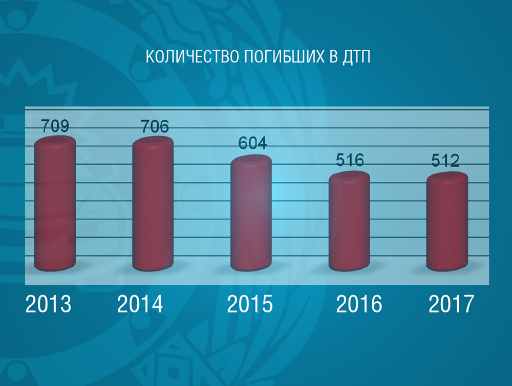 По итогам 2017 года достигнуто снижение количества ДТП на 3,9% (всего 4 тыс. 371), числа погибших - на 0,8% (всего 512) и раненых - на 5,0% (всего 5 тыс. 565).
