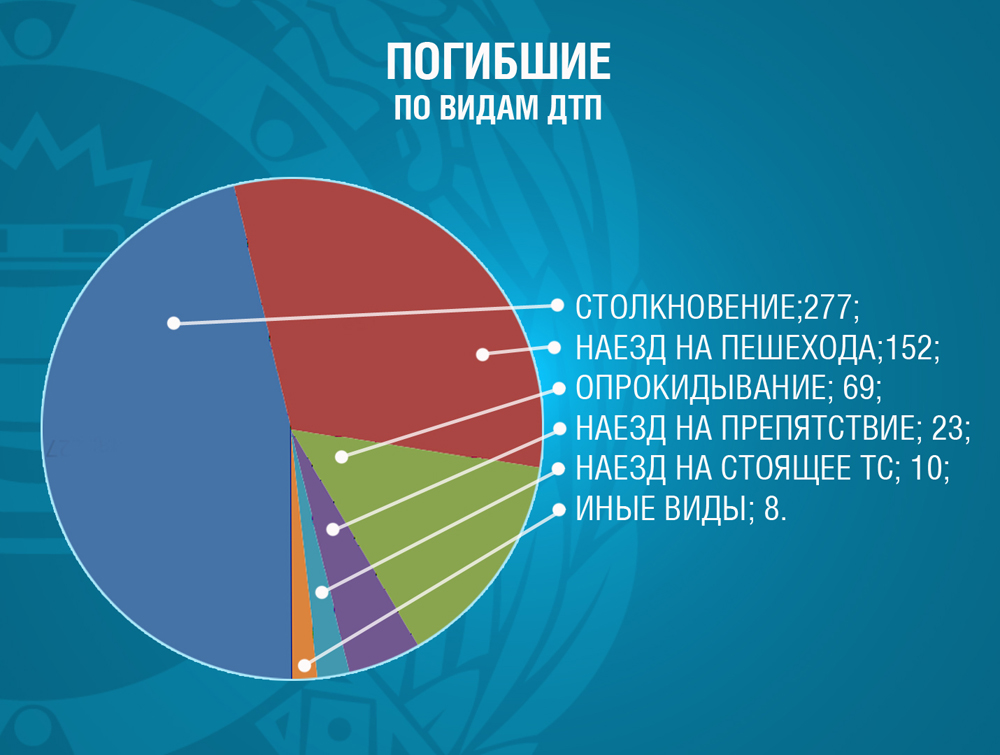В текущем году на 75% возросло число смертельных случаев из-за выезда на полосу, предназначенную для встречного движения (всего 184 чел.). Доля погибших в данных ДТП составляет 36% от общего числа по республике и имеет максимальное значение среди других нарушений ПДД.