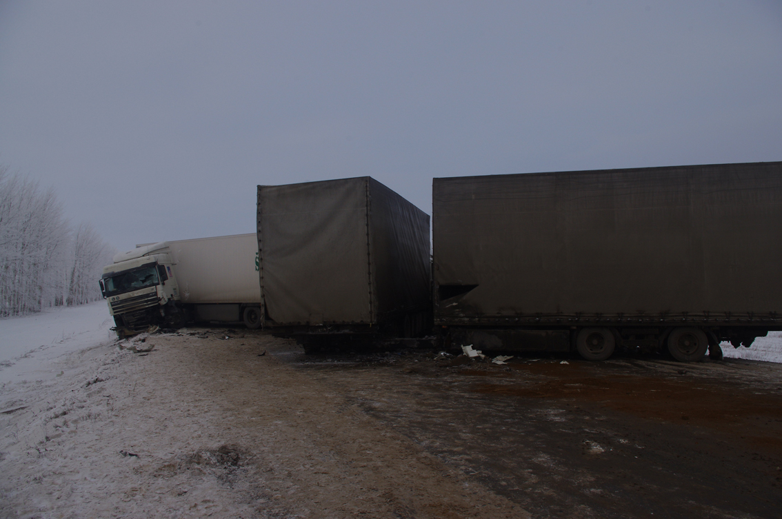 В Дюртюлинском районе в двенадцатом часу дня на 1235 км автодороги Москва – Уфа произошло столкновение десяти автомашин. В условиях плохой видимости – туман и гололеда, водитель автомашины «ФАВ» не справился с рулевым управлением, совершил вынужденную остановку на правой обочине. В результате чего столкнулись автомашины: «Хино», «Газель», «Лада Приора», «МАЗ», «КамАЗ», «ДАФ», «КамАЗ», «ВАЗ-2110», «МАН». В итоге водителя «КамАЗа» с травмами госпитализировали.
