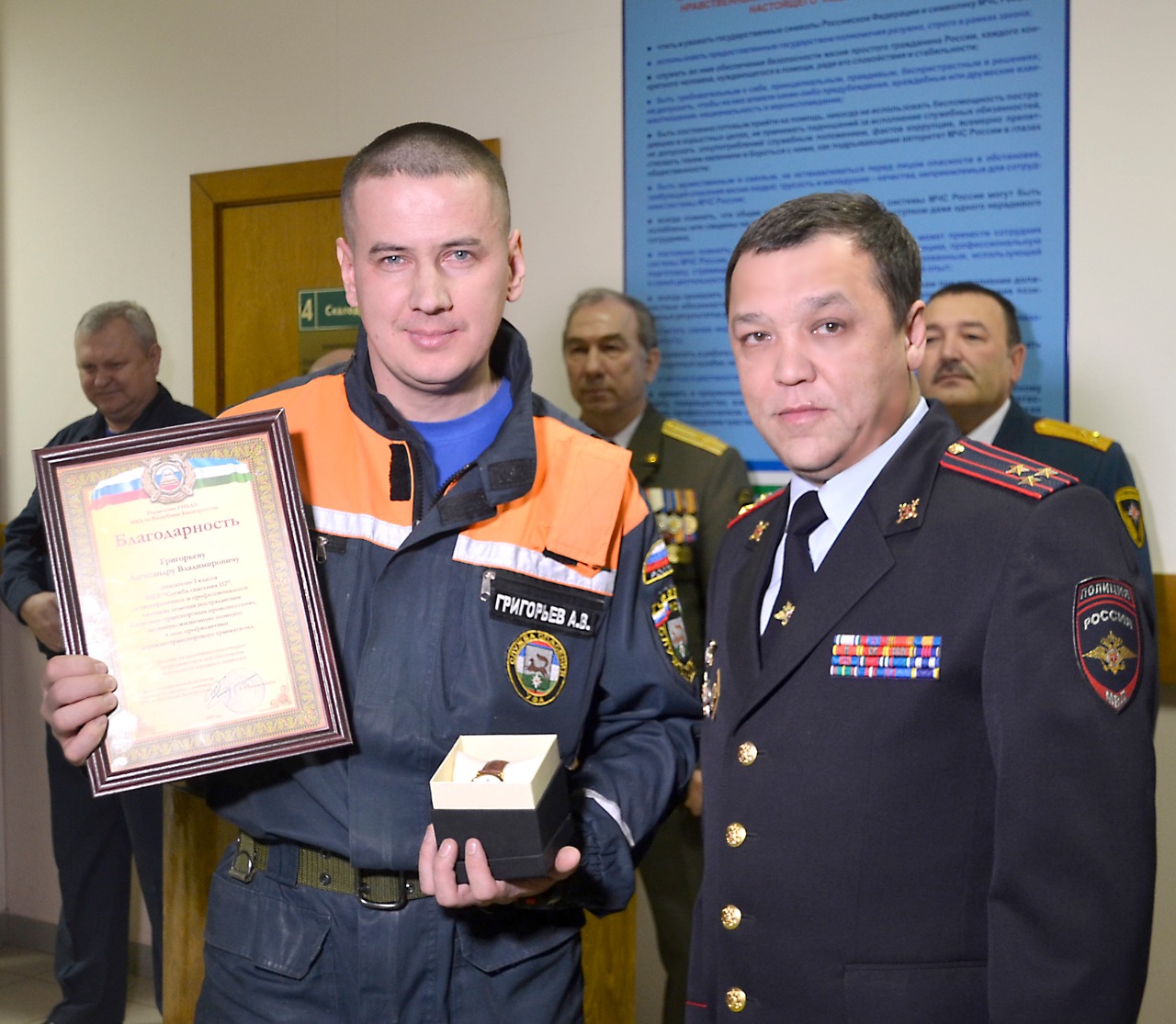 В рамках торжественного мероприятия ко Дню спасателя в столичной "Службе спасения 112" накануне я наградил спасателя 1 класса Поисково-спасательного отряда г. Уфы Александра Григорьева.