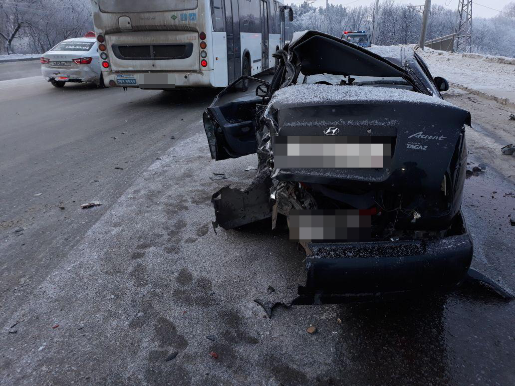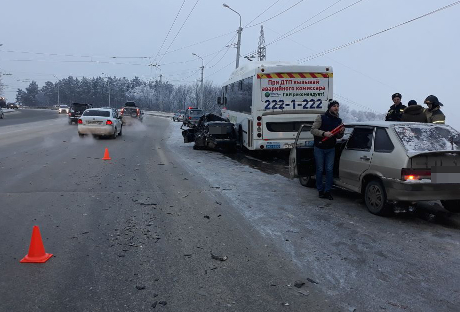 Утром в Уфе на ул.Тоннельная 27-летний уфимец за рулём "Hyundai Accent", предположительно, не справился с управлением и совершил столкновение со встречным "Ford Focus", после чего совершил столкновение со встречным автобусом НефАЗ. От удара "Ford" откинуло на попутную ВАЗ-2114. Известно, что автобус двигался по 69 маршруту УМПО-мкр. Белореченский, в салоне находились 26 пассажиров, из их числа никто не пострадал. А вот водителя "Hyundai" и его 33-летнего пассажира с серьезными травмами госпитализировали, автомашины получили механические повреждения.