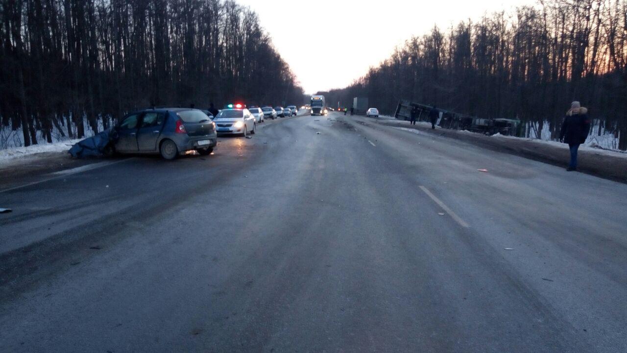 Вечером в Уфимском районе на 1489 км автодороги Самара-Уфа-Челябинск столкнулись "Renault Sandero" под управлением 40-летнего жителя Белокатайского района и грузовик "Mercedes-Benz", за рулём которого находился 33-летний житель Оренбургской области. После удара тягач совершил опрокидывание в кювет. В результате аварии 65-летняя пассажирка легкового автомобиля скончалась на месте. Сам водитель, его 43-летняя супруга и 8-летний сын с различными травмами доставлены в больницу.