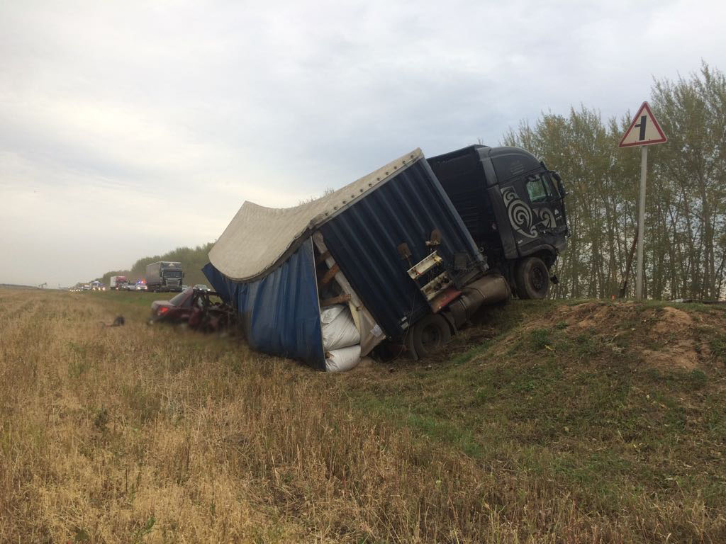 Сегодня около 16 часов 30 минут на 1235 км автодороги Москва – Уфа столкнулись «Лада Гранта», направлявшаяся в сторону г. Уфы, и встречный грузовик «Iveco» с полуприцепом.