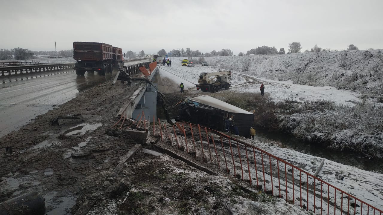 Днем в Стерлитамакском районе на 125 км автодороги Уфа-Оренбург произошло ДТП со смертельным исходом. По предварительной информации, 57-летний мужчина, управляя большегрузом «МАН», допустил опрокидывание транспортного средства в реку Меселька.