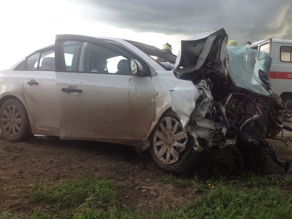 Сегодня около семи часов вечера в Бураевском районе на 161 км автодороги Уфа-Янаул столкнулись "Дэу Матиз" и "Шевроле Круз".